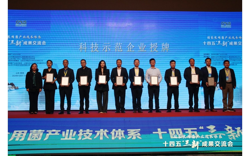 2024年10月10日,國(guó)家食用菌產(chǎn)業(yè)技術(shù)體系十四五“三新”成果交流會(huì)在山東省青島市萊西市舉行,國(guó)內(nèi)食用菌行業(yè)的領(lǐng)軍人物、專(zhuān)家學(xué)者、政府代表以及企業(yè)界代表共300余人參會(huì),共同探討食用菌產(chǎn)業(yè)新未來(lái)。開(kāi)幕式上,江蘇安惠生物科技有限公司等30家企業(yè)獲得“國(guó)家食用菌產(chǎn)業(yè)技術(shù)體系示范企業(yè)”榮譽(yù)稱(chēng)號(hào)。