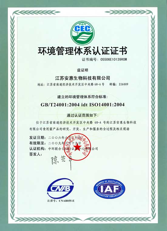 2006年6月20日,公司通過(guò)ISO14001環(huán)境管理體系認(rèn)證。
