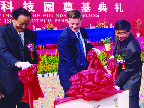2002年10月24日“安惠國際生物科技園”奠基,參加奠基典禮的有新西蘭國家黨主席英格里希及他所率領(lǐng)的政府代表團和科技代表團,南通市委、市政府領(lǐng)導(dǎo)和有關(guān)專家學(xué)者計200多人。