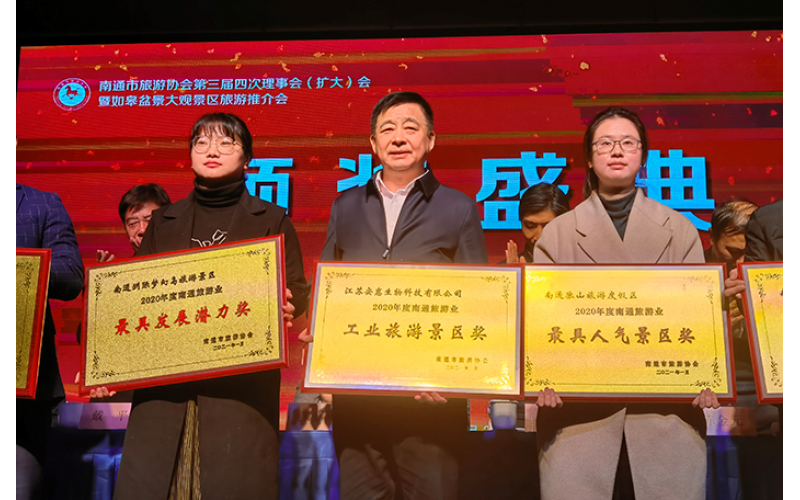 2021年3月2日,南通市旅游協(xié)會(huì)三屆四次會(huì)員大會(huì)在長壽之鄉(xiāng)——如皋召開。安惠生物科技園獲評2020年度南通旅游業(yè)“工業(yè)旅游景區(qū)獎(jiǎng)”,安惠公司董事長陳惠榮獲2020年度南通旅游業(yè)“突出貢獻(xiàn)獎(jiǎng)”,并當(dāng)選南通市旅游協(xié)會(huì)副會(huì)長。