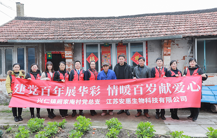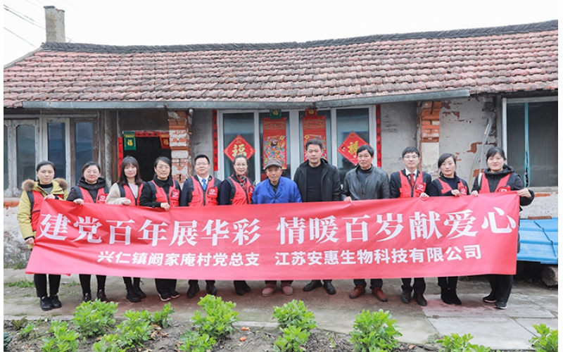 2021是中國共產(chǎn)黨建黨100周年,在這個特殊的年份,安惠黨委、工會、團委聯(lián)合組織開展愛心“雙百”暨菌物健康科普走進美麗鄉(xiāng)村志愿服務活動。安惠公司是省市區(qū)三級文明單位,2020年,為進一步落實省文明辦、省農(nóng)業(yè)農(nóng)村廳的工作要求,在南通市文明辦的牽頭下,安惠聯(lián)合工會與通州區(qū)興仁鎮(zhèn)闞家庵村結(jié)對,開展精神文明共建。