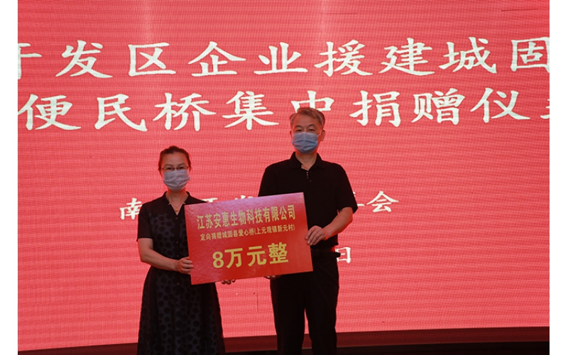 陜西省漢中市城固縣是南通開發(fā)區(qū)對口扶貧地區(qū),為鞏固已取得的階段性協(xié)作成果,進一步助力鄉(xiāng)村振興,在已經(jīng)援建城固縣山區(qū)7座便民橋的基礎上,今年再捐建12座便民橋。8月,開發(fā)區(qū)慈善會發(fā)出《關(guān)于定向捐贈漢中市城固縣山區(qū)便民橋建設征集函》,得到了廣大企業(yè)界的積極響應,短短3天時間共收到包括安惠公司在內(nèi)的12家企業(yè)的定向捐贈回函。